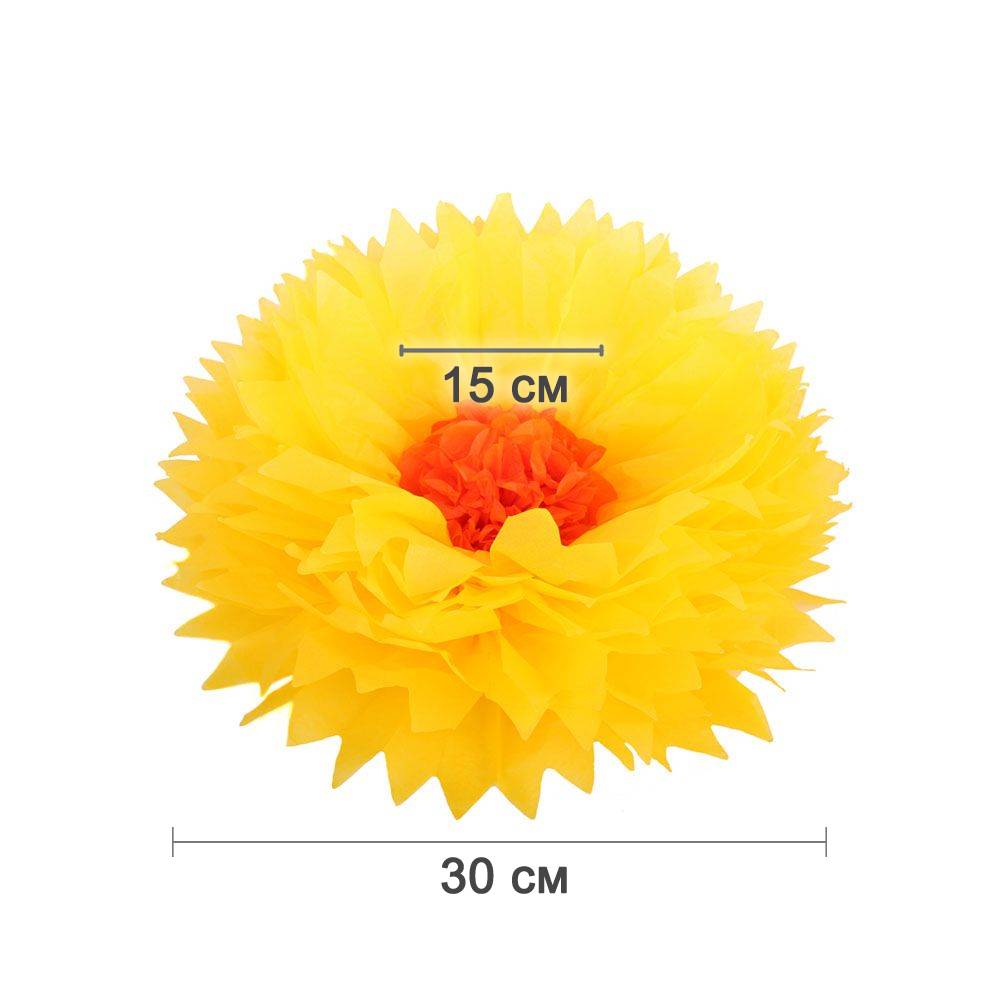Бумажный цветок 30 см ярко-желтый+оранжевый