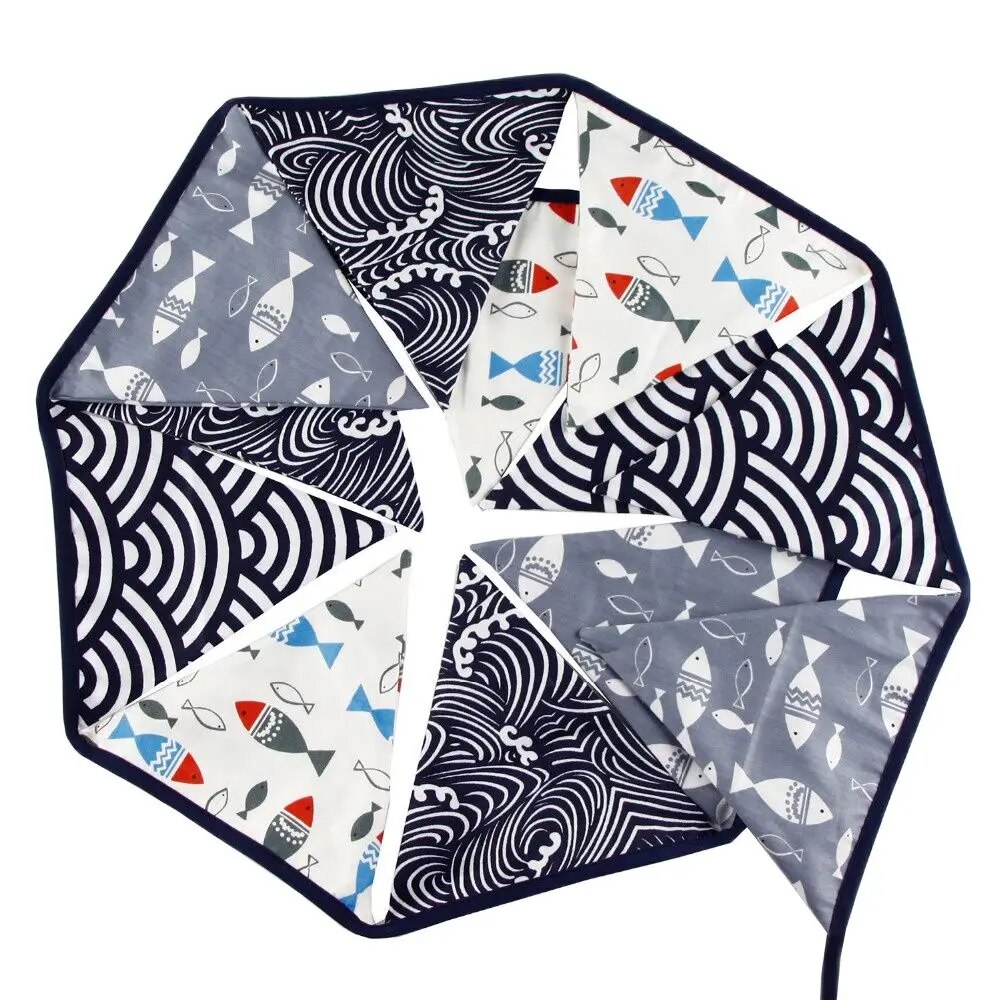 Гирлянда состоит из 12 флажков. Расстояние между флажками - 6 см, общая длина составляет 4 м.