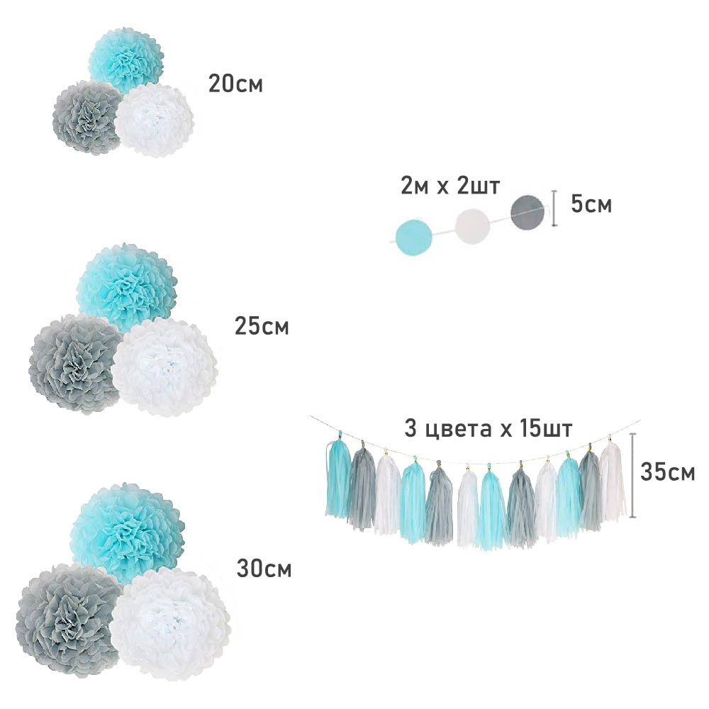 Готовый комплект из бумажных помпонов и гирлянд, можно применять в качестве декорирования фотозоны к празднику. Бумажные помпоны необходимо расправить. Готовый набор доставляется в сложенном виде. Можно использовать несколько раз.