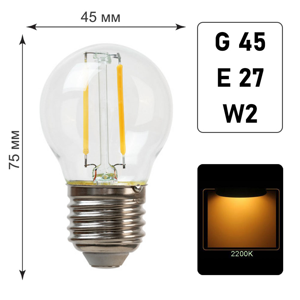 Лампа филаментная G45 E27 W2 K2200