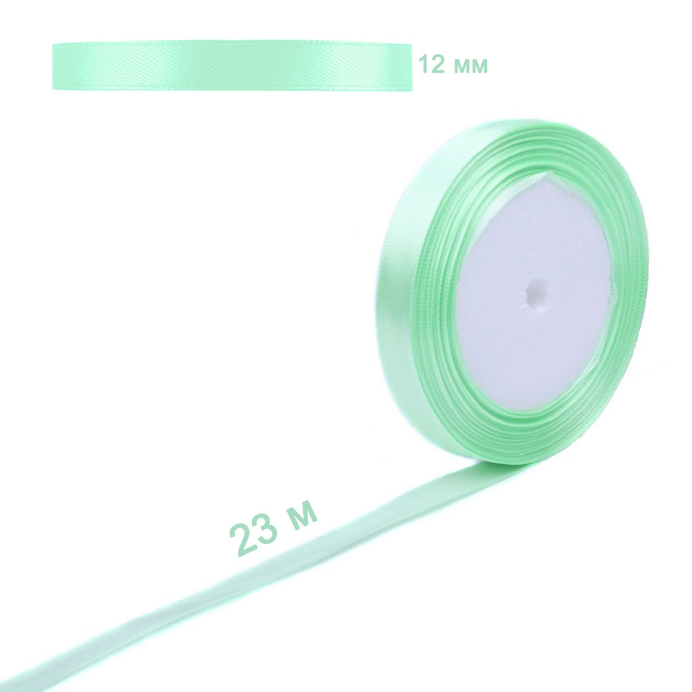 Лента атласная салатовая 12 мм х 23 м