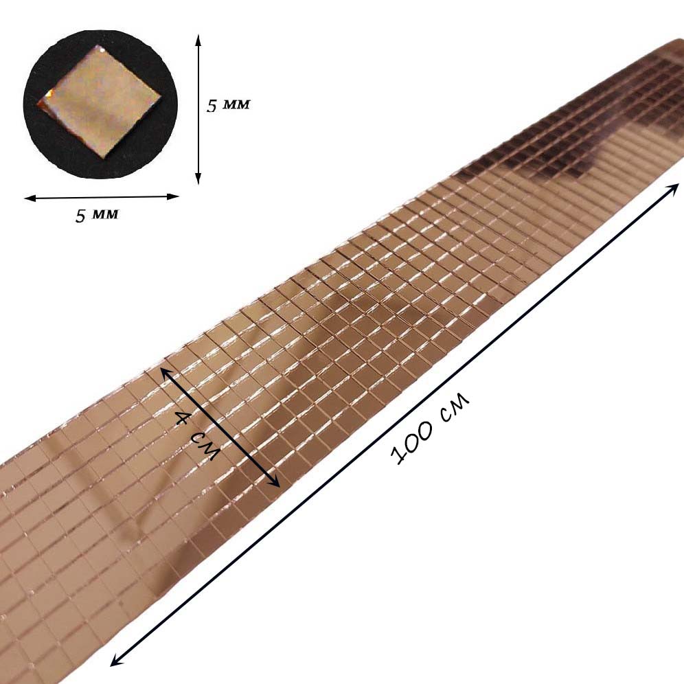 Лента самоклеящаяся зеркальная мозаика стекло, 4см х 1м 5х5мм, шампань
