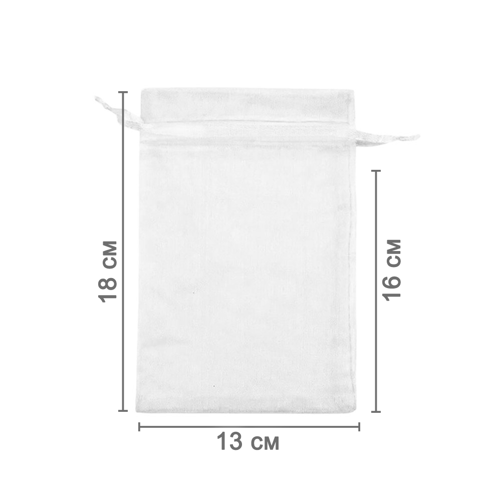 Мешочек из органзы 13 х 18 см — стильное решение для упаковки мелких и средних предметов. Лёгкая полупрозрачная ткань красиво подчёркивает содержимое.