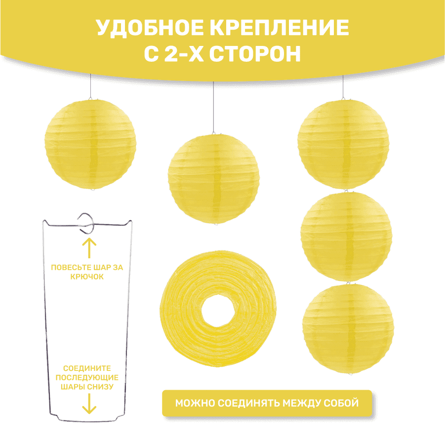 В комплект входит 8 бумажных фонариков и лента.