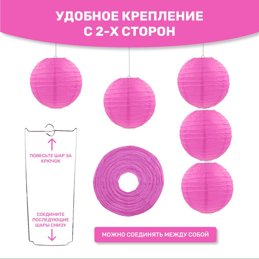 В комплект входит 8 бумажных фонариков и лента атласная.
