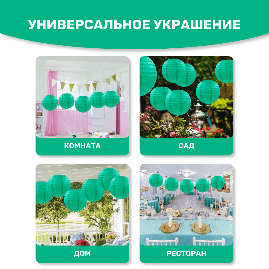Комплект подвесные фонарики 40 см х 8 шт, изумрудный