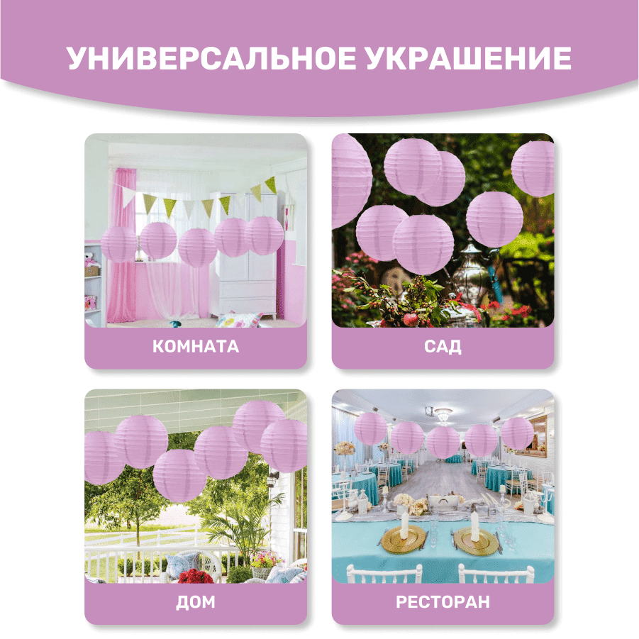 Комплект подвесные фонарики 40 см х 8 шт, светло-сиреневый