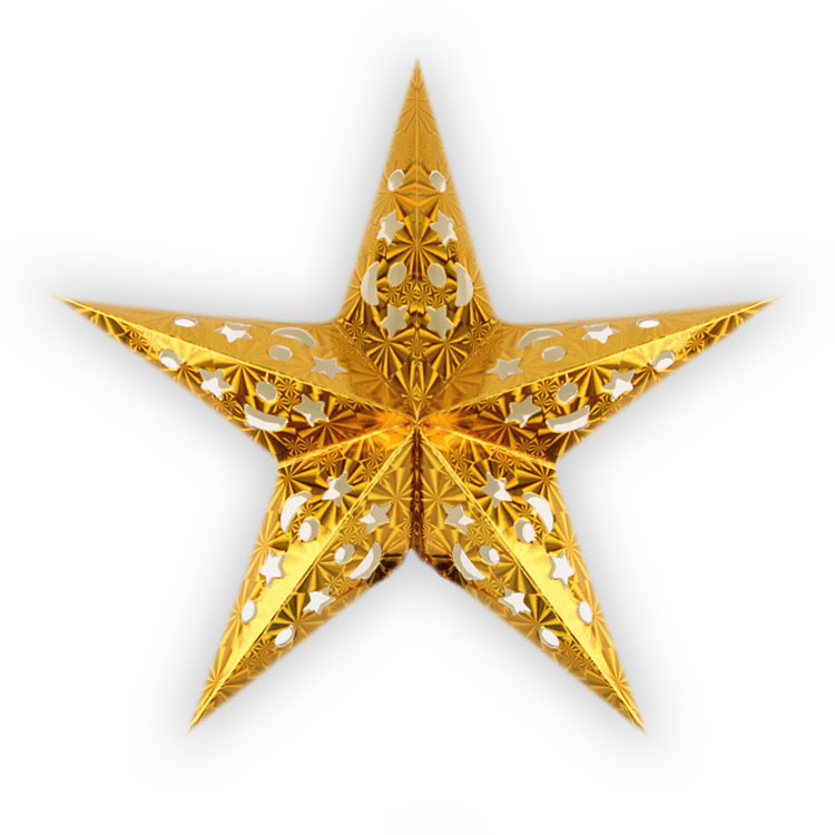 Звезда бумажная 30 см голографическая золотая