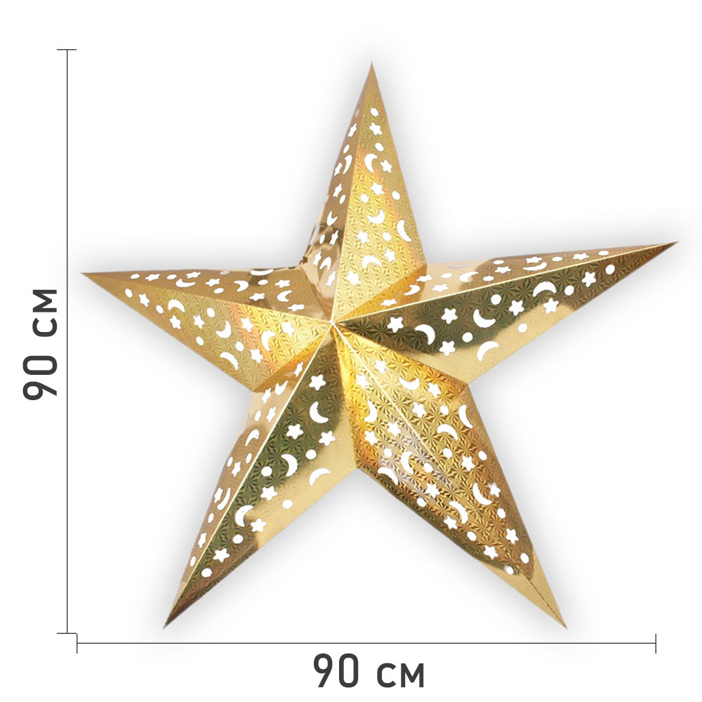 Звезда бумажная 90 см голографическая золотая